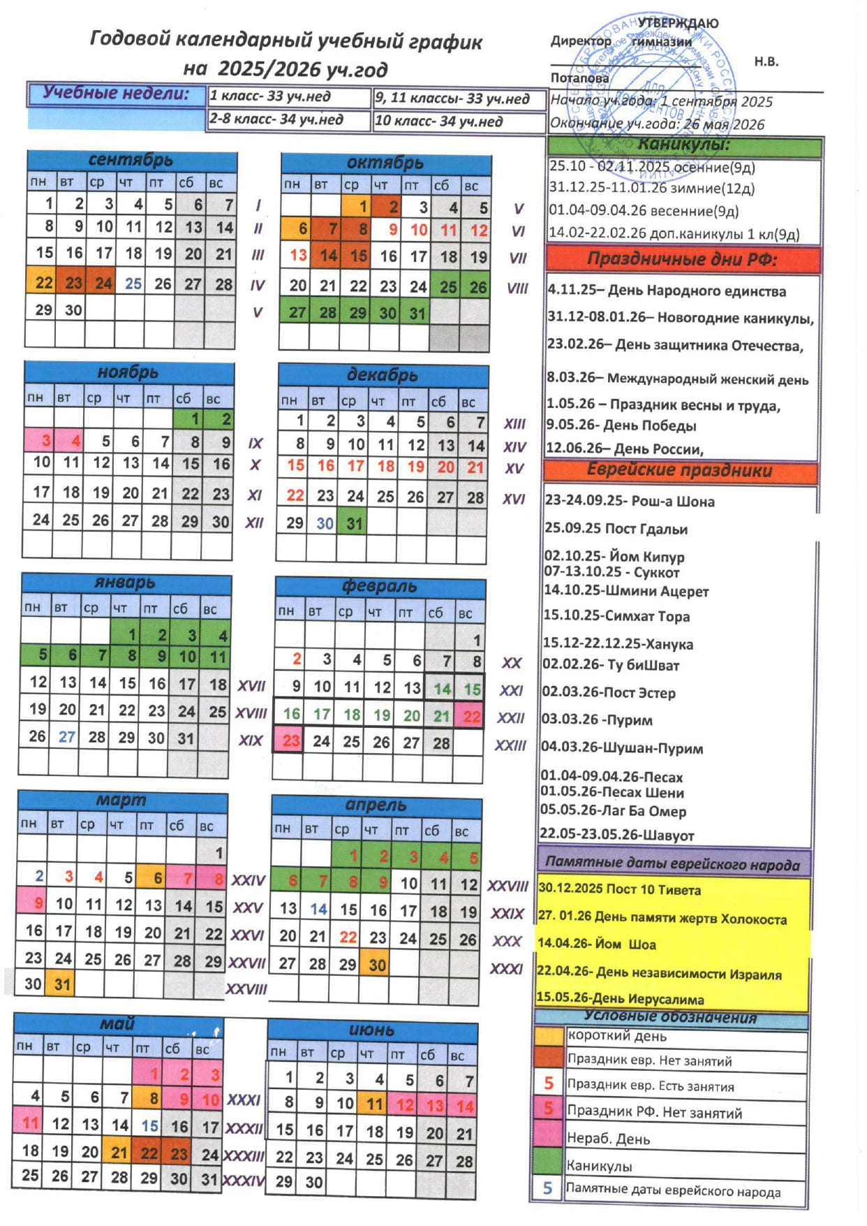 Годовой календарный учебный график на 2025-2026 уч. год.